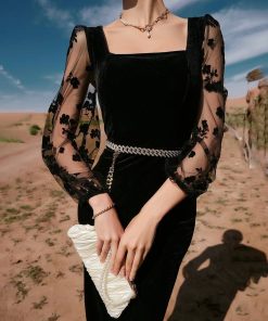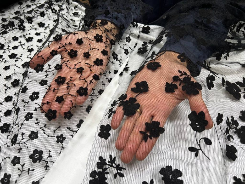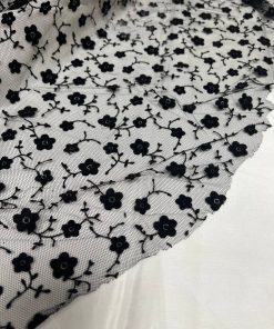 تور طرحدار مخملی طرح گل مشکی