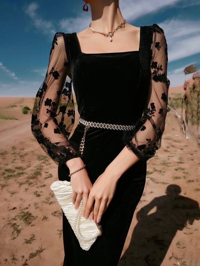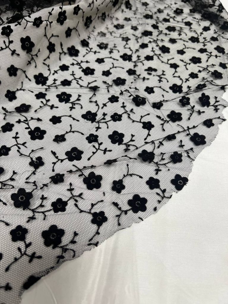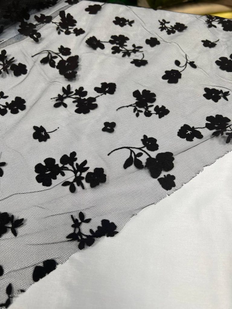 تور طرحدار مخملی طرح گل مشکی